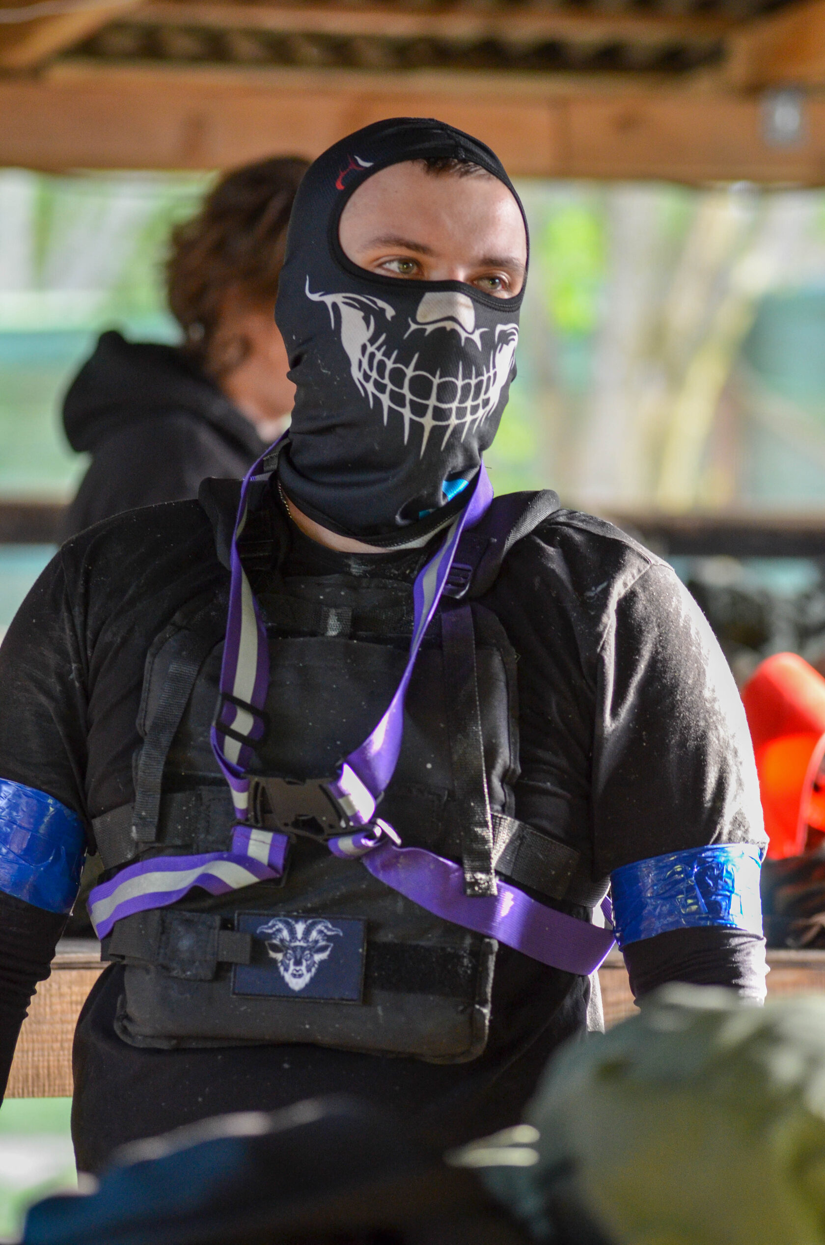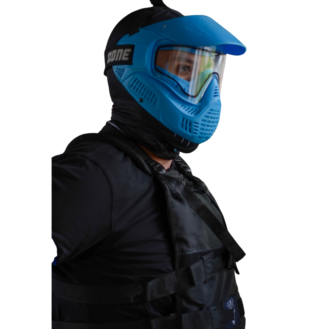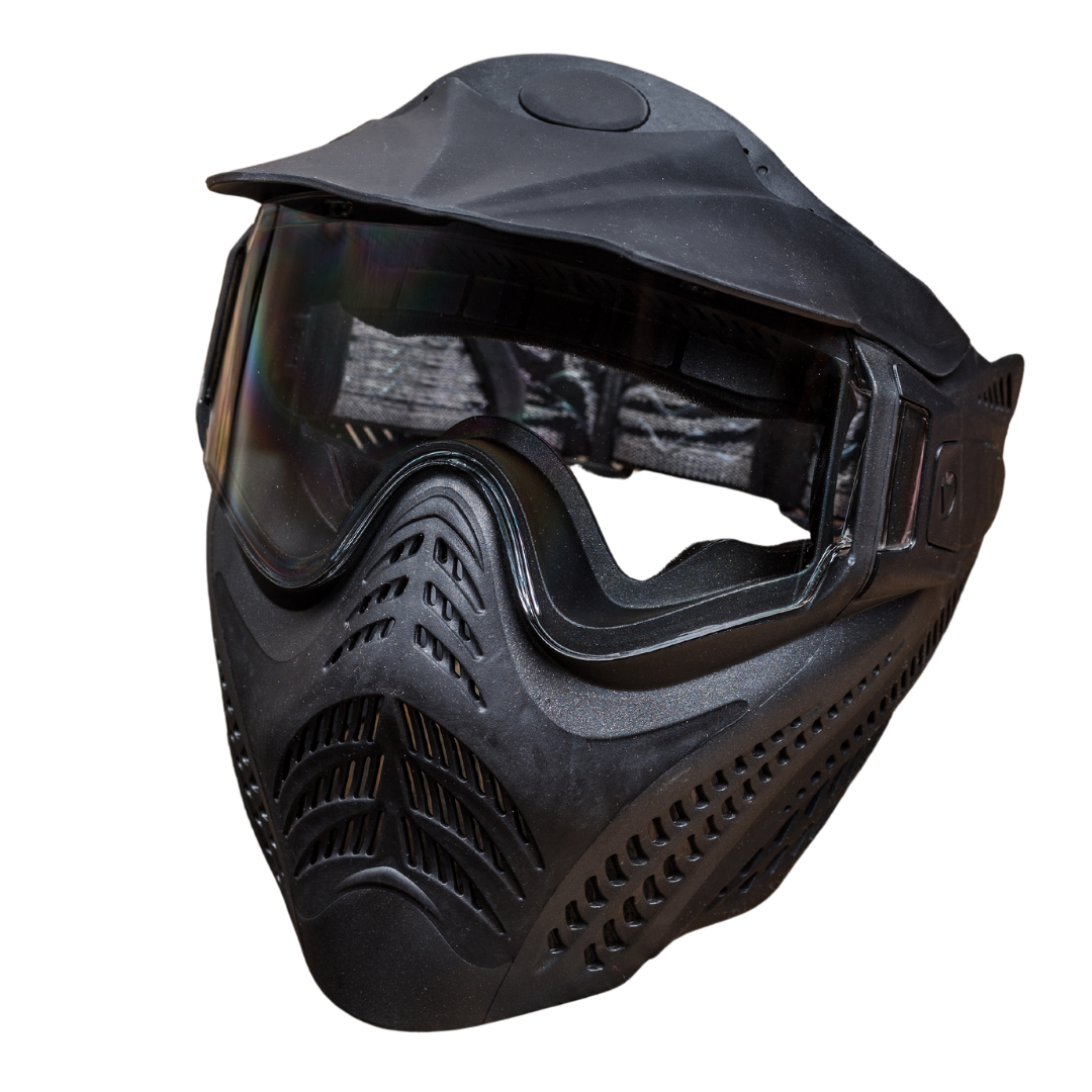 Захисна маска захищає обличчя під час гри і є обов'язковою в пейнтболі. Її не можна знімати на полі змагань.