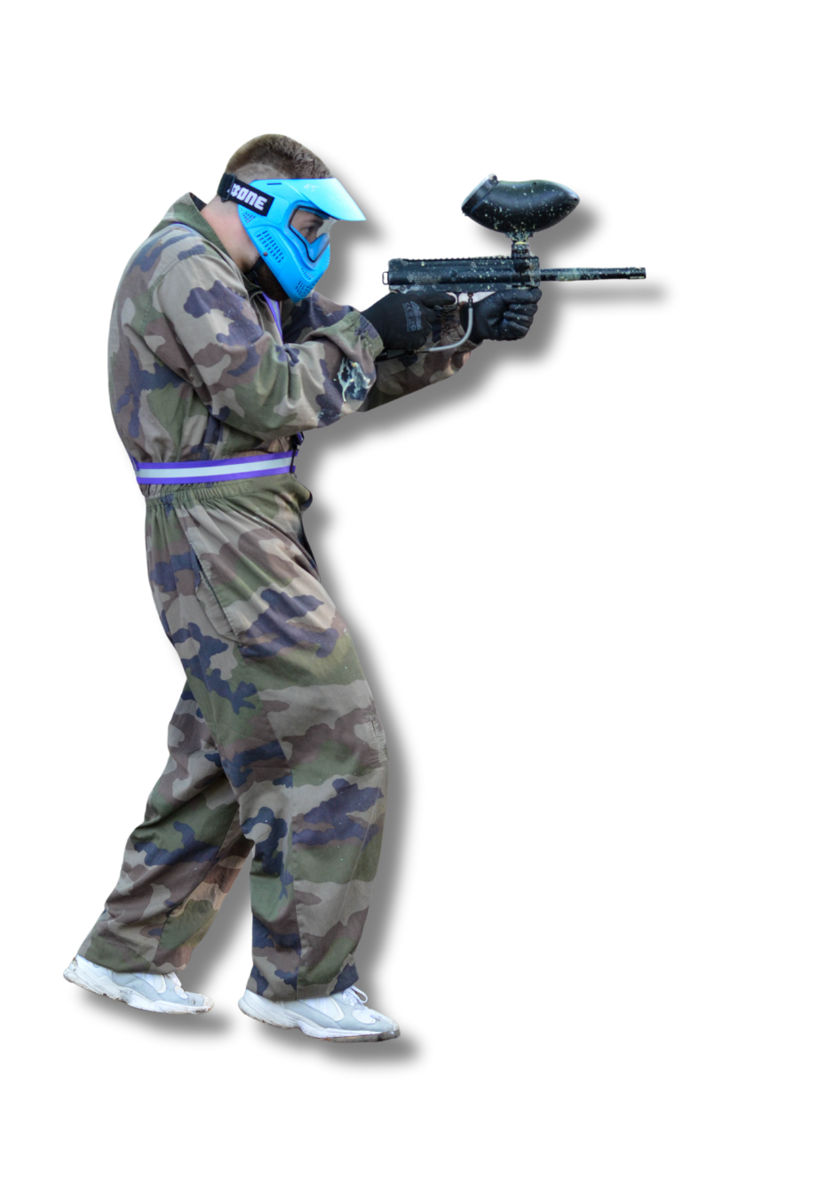 Камуфляжний костюм у пейнтболі допомагає гравцям зливатися з оточенням, зменшуючи помітність для супротивників, що підвищує шанси на успіх, особливо в іграх на відкритій місцевості або в лісі. Крім того, він захищає від подряпин і укусів комах.